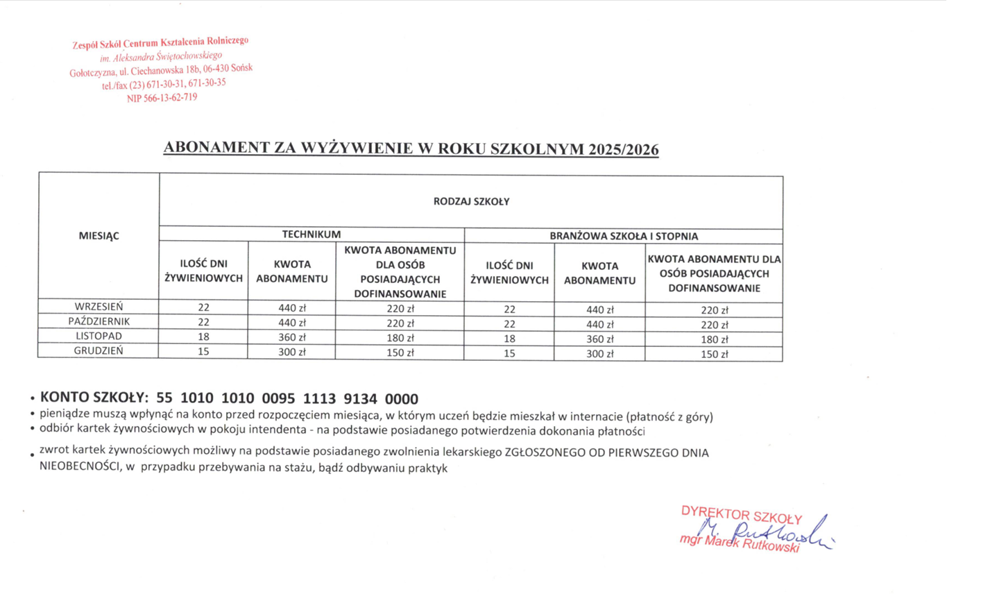 Rok szkolny trwa od 01.09.2025 r. do 31.08.2026 r.